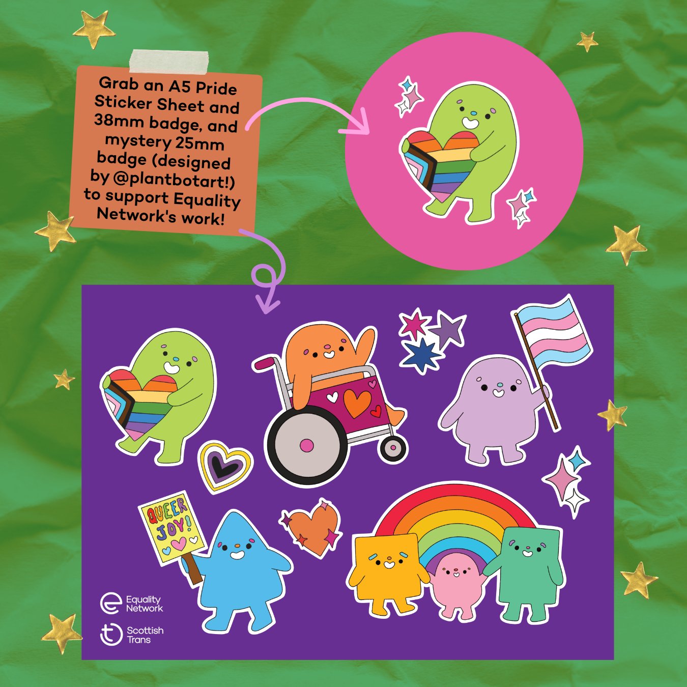 Help Equality Network fighting for LGBTI+ rights in Scotland! the sales from this sticker pack fund crucial campaign work.